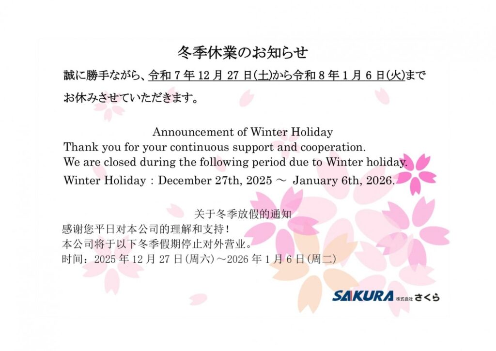 株式会社さくら 冬季休業のお知らせ